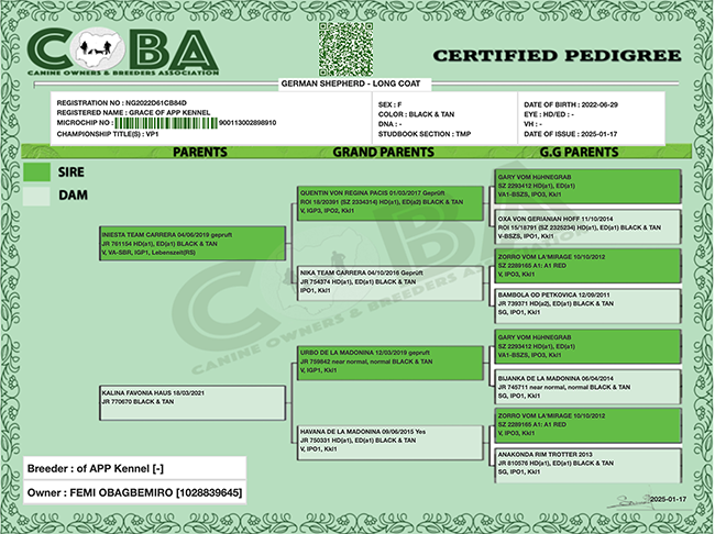 Access to COBA Studbook, statistics and ancestry records of dogs in Nigeria.